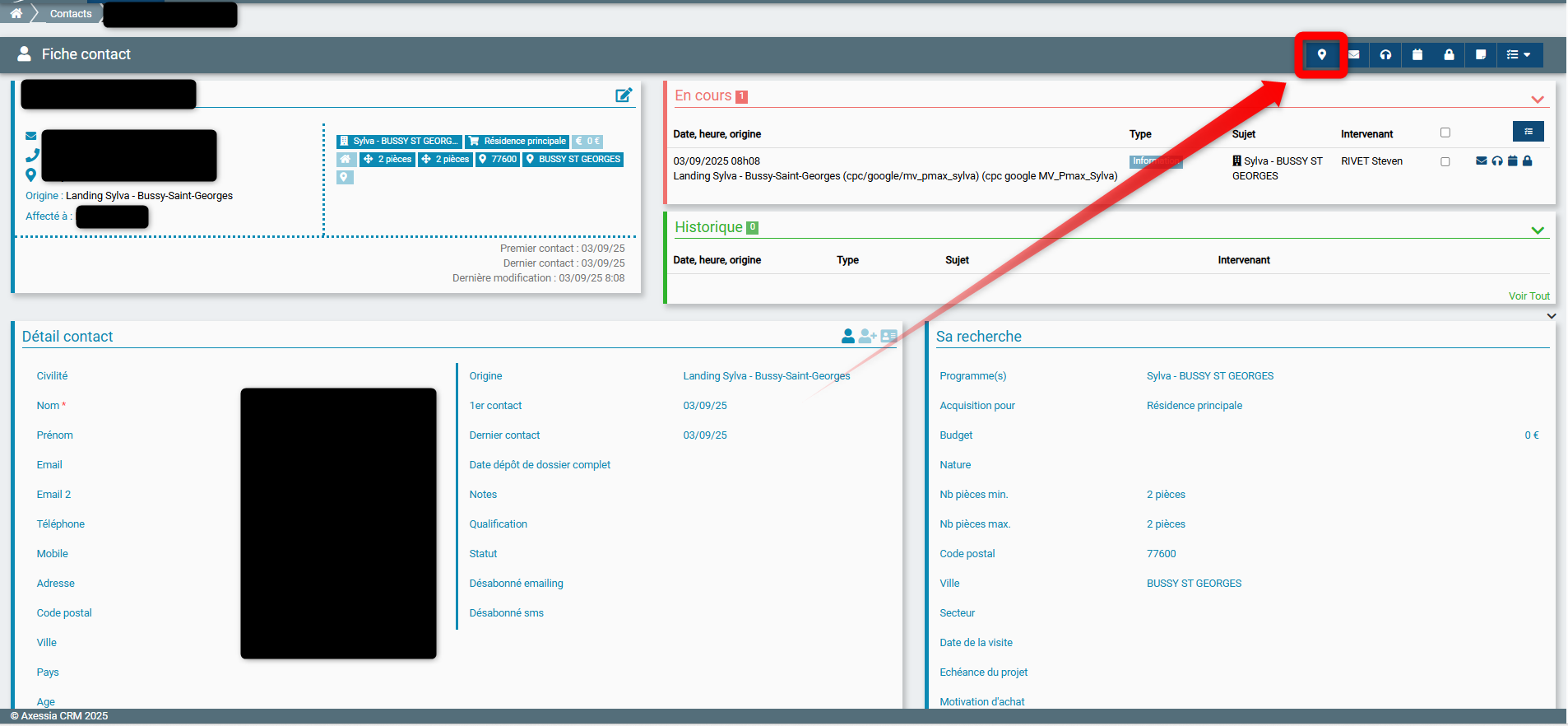 Pour renseigner un appel/sms, accéder à la fiche du contact :