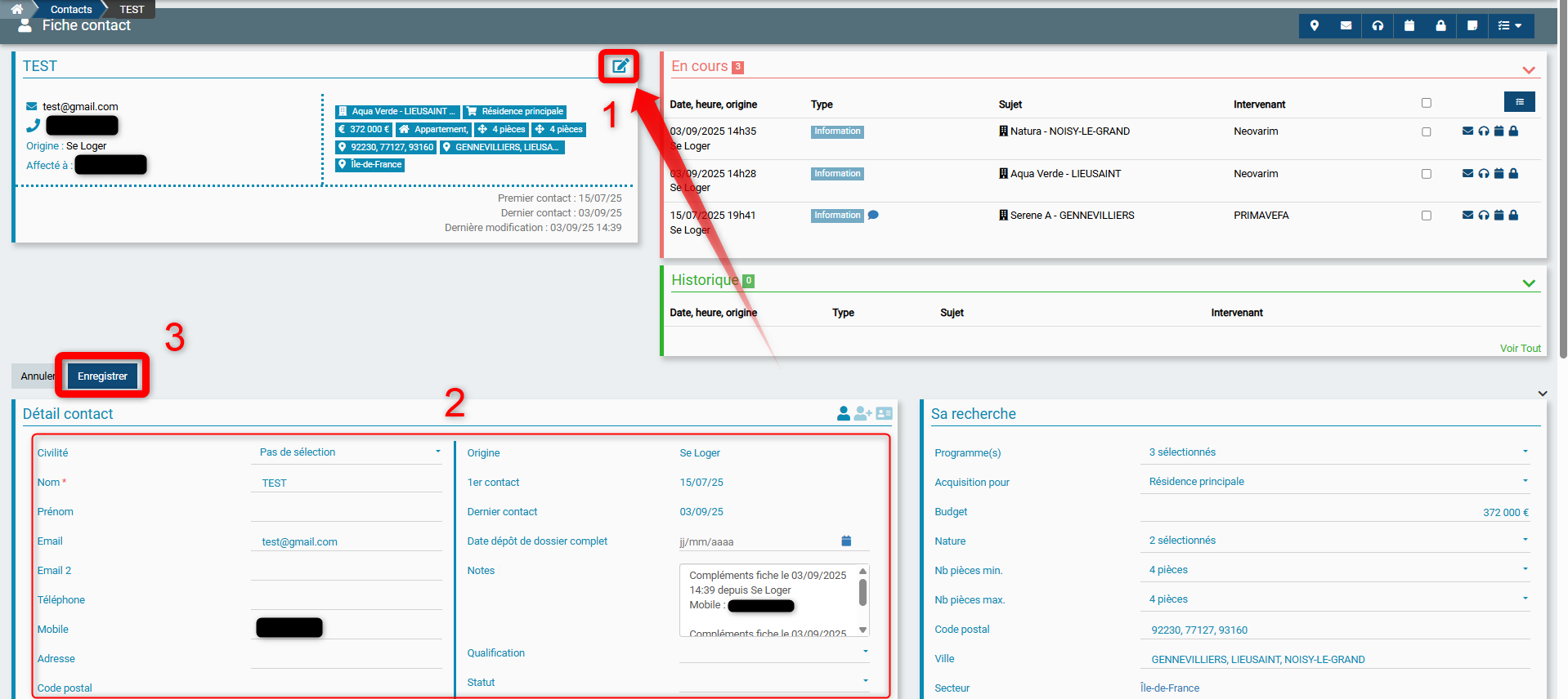 – Modifier les informations voulues et valider en cliquant sur « Enregistrer »