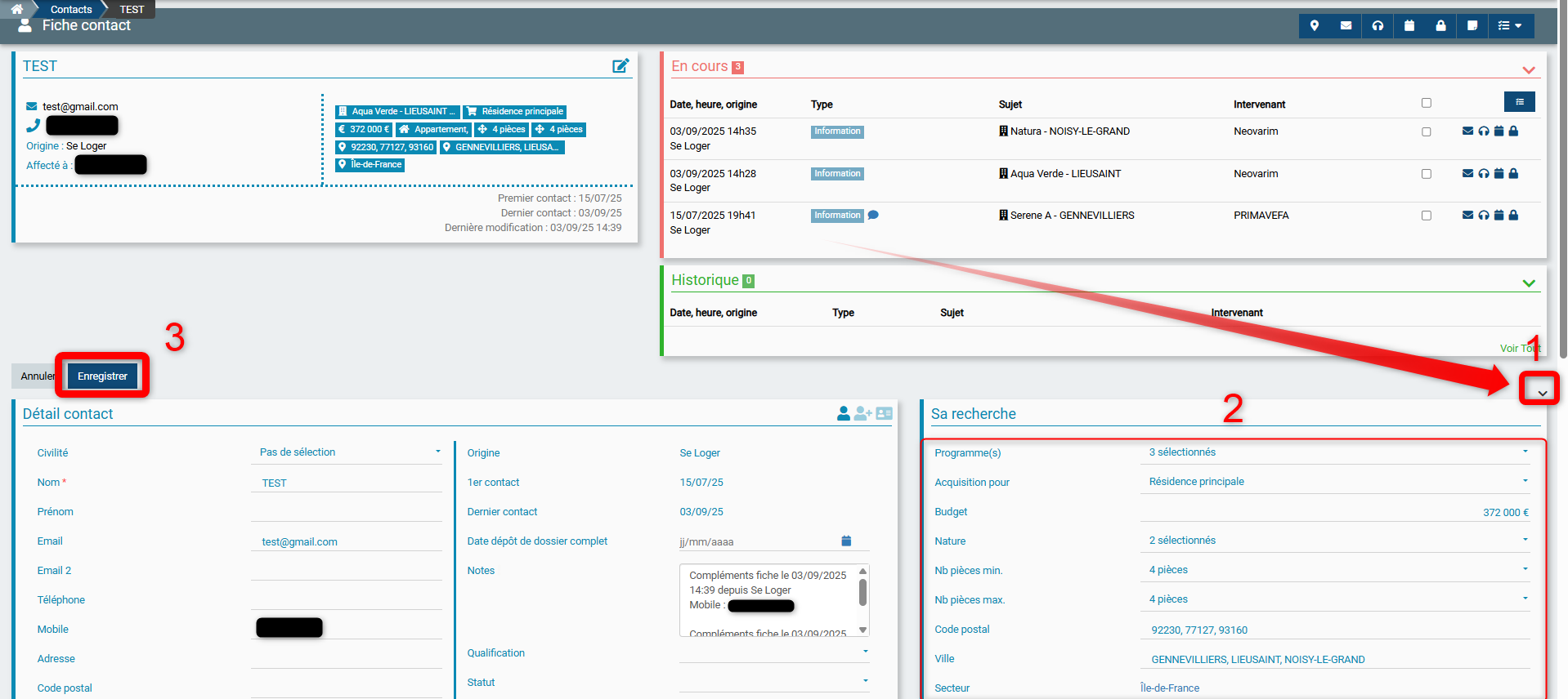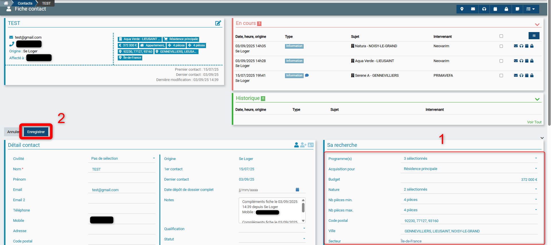 Plus d’informations sur la gestion des recherches dans l’article « Critères de recherche d’un contact ».
