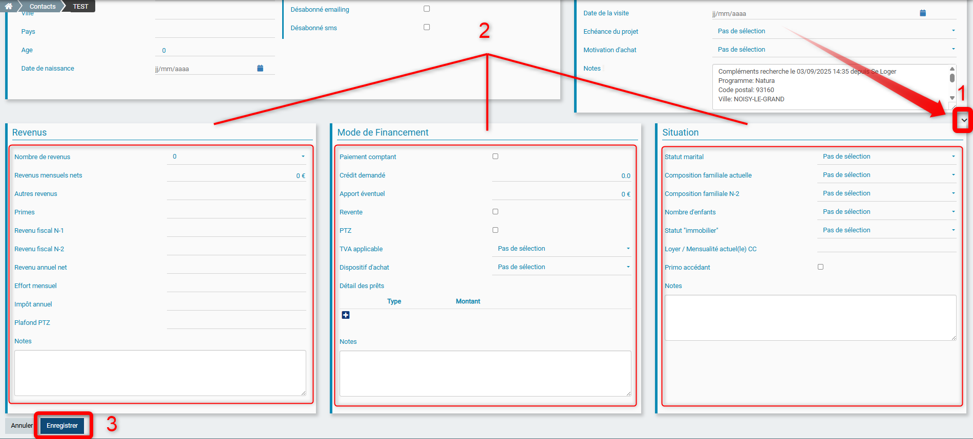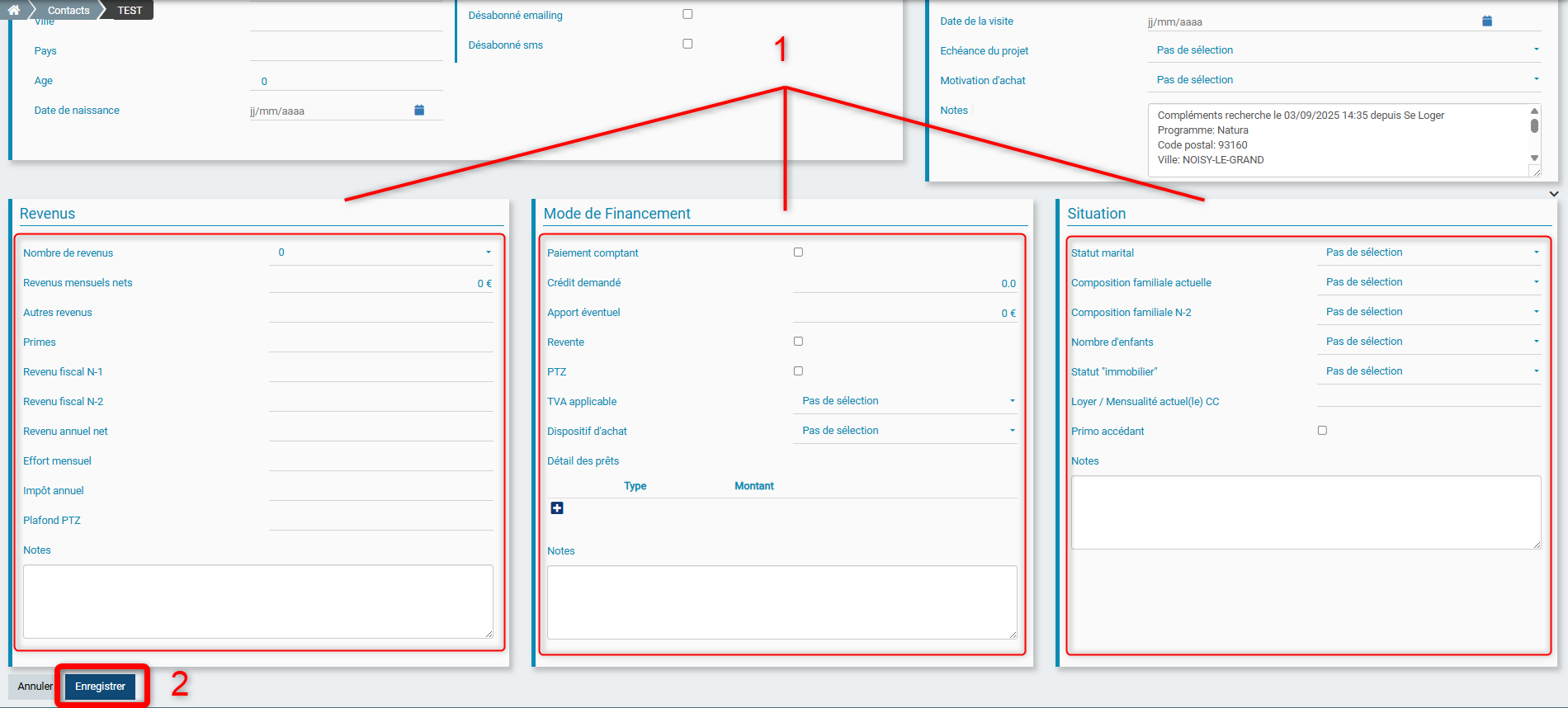 – Modifier les champs voulus et cliquer sur le bouton « Enregistrer » pour valider